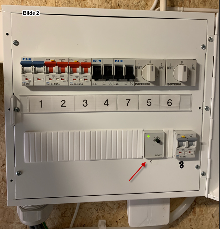 Ellers er det ingen stor jobb for en elektriker å montere selve termostatbryteren i eksisterende strømskap. Se bilde 2.