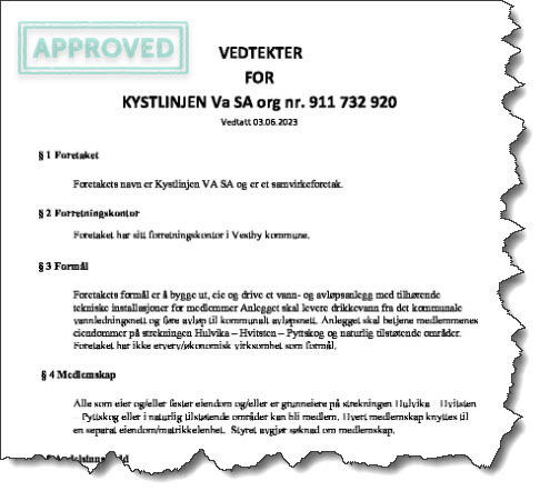Foretakets navn er Kystlinjen VA SA og er et samvirkeforetak.